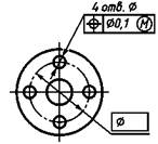 Позиционный допуск четырех отверстий - Æ 0,1 мм (допуск зависимый) |