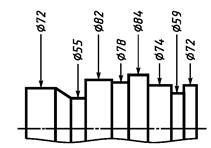 6.9 Когда для участков поверхности с одним номинальным размером назначают разные предельные отклонения, границу между ними наносят сплошной тонкой линией, а номинальный размер указывают с соответствующими предельными отклонениями для каждого участка отдельно (см. рисунок 86).