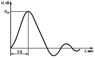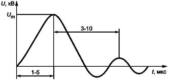3.1.24 импульсное напряжение: Перенапряжение, представляющее собой одиночный импульс или колебательный процесс (обычно сильно демпфированный), длительностью до нескольких мс.