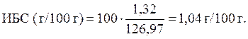 Рассчитывают содержание ИБС в исследуемом образце (в г на 100 г мясных консервов) по формуле: