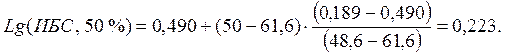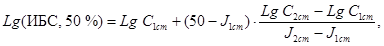 По формуле (10) рассчитывают десятичный логарифм концентрации раствора первого стандартного образца, соответствующей 50 %-му связыванию конъюгата (Lg (ИБС, 50 %):