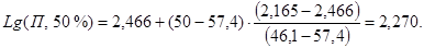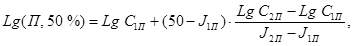 По формуле (20) рассчитывают десятичный логарифм концентрации раствора исследуемого образца, соответствующей 50 %-му связыванию конъюгата, (Lg (П, 50 %):