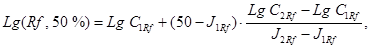 Далее аналогичным образом определяют концентрацию раствора первого стандартного образца и ее десятичный логарифм, соответствующие ближайшему разведению (С2Rf и Lg C2Rf), при которых связывается менее 50 % конъюгата (J2Rf):