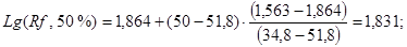 По формуле (14) рассчитывают десятичный логарифм концентрации раствора второго стандартного образца, соответствующей 50 %-му связыванию конъюгата (Lg (Rf, 50 %):