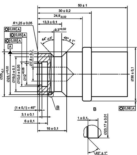 1 Д - поверхность уплотнения с шероховатостью (0,8 ± 0,05) мкм.