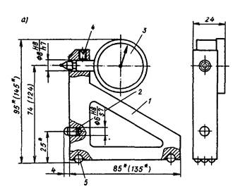 1 - кронштейн; 2 - упор; 3 - индикатор часового типа