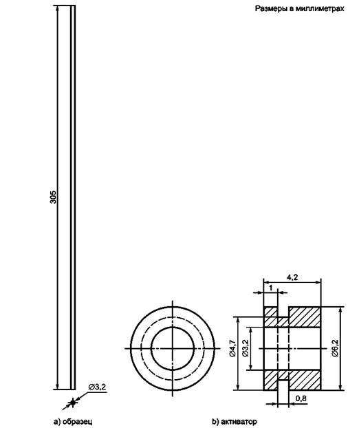 6.3.1 Активатор, прикрепленный к образцу (см. рисунок 2) и состоящий из достаточного количества алюминия и магния, необходимого для выделения не менее 3,0 кДж.