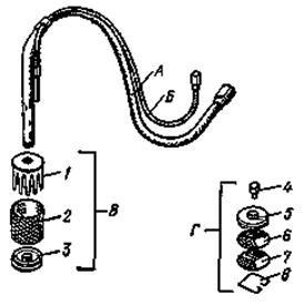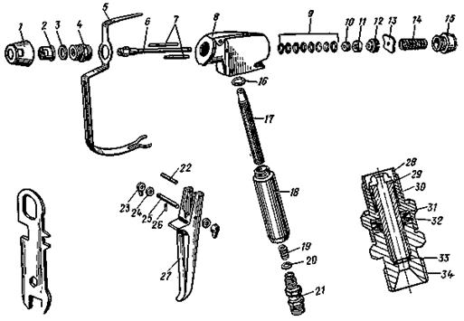 3.8. При закрытом запорном клапане пистолета и открытом клапане регулятора давления мембрана находится в неподвижном положении, а гидравлическая жидкость (масло) под действием поршня при работающем электродвигателе перепускает масло из цилиндра поршневого насоса в полость коробки эксцентрика (диска-маховика).