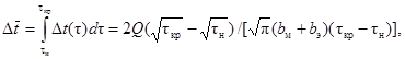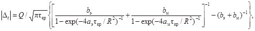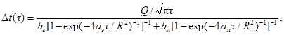 Таким образом, tкр - момент времени, исчисляемый с момента возникновения импульса и разграничивающий время действия рассматриваемого теплового процесса на два интервала: t < tкр и t > tкр, т.е., когда этот процесс описывается выражениями (2) и (1) соответственно.