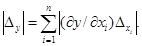 где x1, ..., хп - независимые аргументы (они же измеряемые параметры), предельная абсолютная ошибка определяемого параметра может быть выражена через предельные абсолютные ошибки измеряемых параметров по формуле