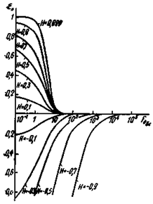 теплофизических характеристик нагревателя от величин Н = (bм - bн)/(bм + bн),