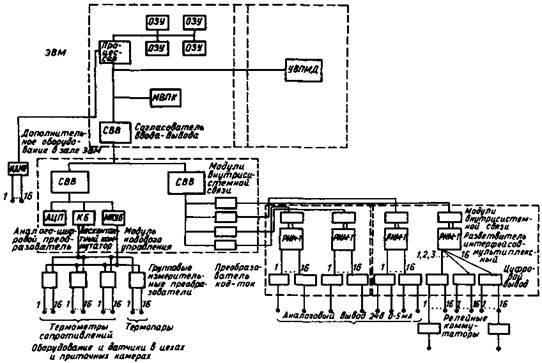 г) вследствие медленного в целом изменения теплового процесса в здании, быстродействие ЭВМ должно быть относительно невысоким (50 - 80 тыс. операций/с), оперативная память должна быть не ниже 32К слов, должна иметь устройства внешней памяти на дисках и магнитной ленте;