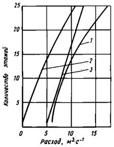 Определяем поправки к расходу в шахту лифтов: на температуру наружного воздуха DQшл,t = -0,4 м3 · с-1 (см. рис. 7б), на скорость ветра DQшл,v = 0 м3 · с-1 (см. рис. 8б). По формуле определяем расход воздуха на оголовке шахты лифтов (DQшл); 6,0 - 0,4 + 0 = 5,6 м3 · с-1 = 20160 м3 · ч-1.