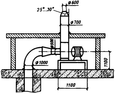 Если температуру продуктов горения (tд) принять равной 300 °C, тогда средняя температура продуктов горения в шахте дымоудаления равна 115 °C.