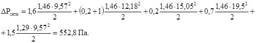 Pду = DPкл + DPш + DPсети Па, (5)