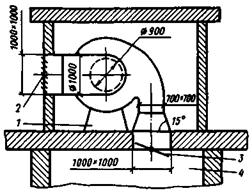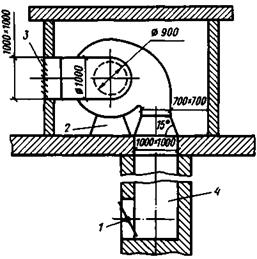 По каталогу выбираем для установки радиальный вентилятор Ц4-70 № 10 (частота вращения 960 об. · мин.-1, мощность электродвигателя 15 кВт).