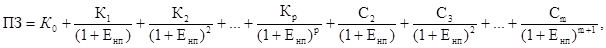 где Кпр, Спр - единовременные и текущие затраты, приведенные к базисному году;