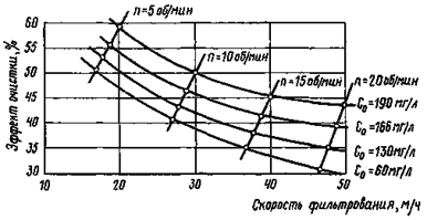 По данным обобщенного графика рекомендуются следующие параметры микрофильтрования при механической очистке городских и близких к ним по составу сточных вод: