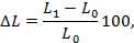 Выражают остаточное изменение размеров как изменение размера образца DL, рассчитанное в процентах от первоначальной длины L0 по формуле. Рассчитывают изменения для каждого из двух измерений