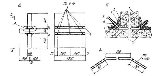 1. Прочность платформенных стыков с инъекционной заделкой швов (рис. 6) зависит от прочности бетона стыкуемых конструкций, инъекционного раствора и определяется как прочность стыков с обычной заделкой: