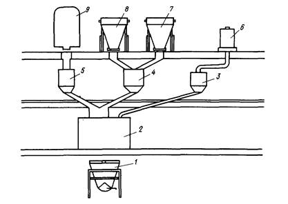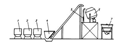 4 - дозатор для инертных заполнителей; 5 - дозатор весовой для цемента;