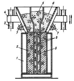 7 - вибраторы; 8 - разделительные диафрагмы; 9 - разделительная перегородка