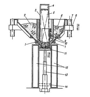 4 - скиповый подъемник для загрузки исходных компонентов; 5 - подача воды;