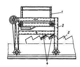 для движения рамы; 4 - подвижная рама крепления бункера;