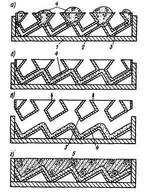 1 - форма; 2 - формовочный отсек; 3 - разделительная диафрагма
