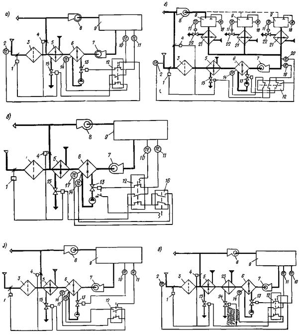 Рис. 1. Технологические схемы центральных однозональных кондиционеров