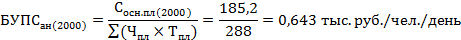 Сф(2000) = БУПСан(2000) × ТРф = 0,643 × 352 = 226,336 тыс. руб.