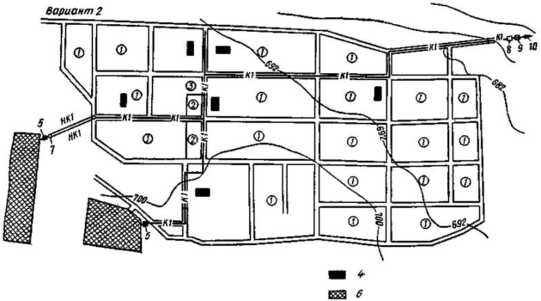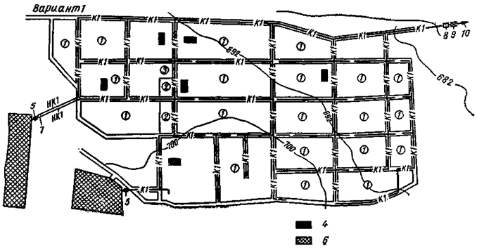 2.4. Централизованные системы канализации, как правило, предусматриваются для центральных усадеб совхозов и колхозов, имеющих развитый общественный центр и прилегающую к нему многоквартирную секционную и блокированную застройку.
