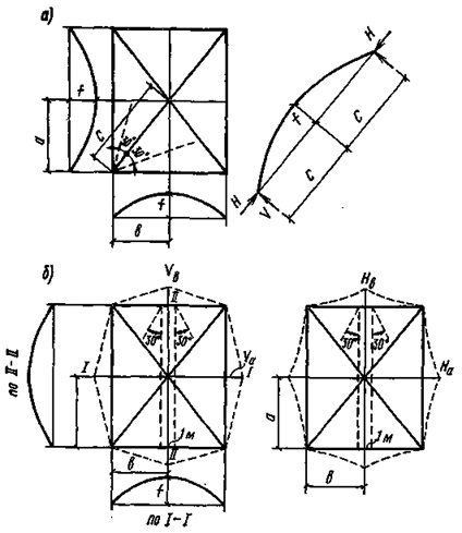 Расположение и размеры выявленных дефектов и повреждений, а также места вскрытий и отбора проб материалов, как и при проведении предварительных обследований, с помощью условных обозначений показываются на планах, разрезах и развертках соответствующих конструкций. На чертежах показываются также детали вскрытий, конструкций узлов и т.п.