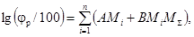 lg(φp/100) = AM + BM2. (3)