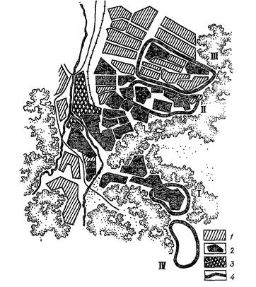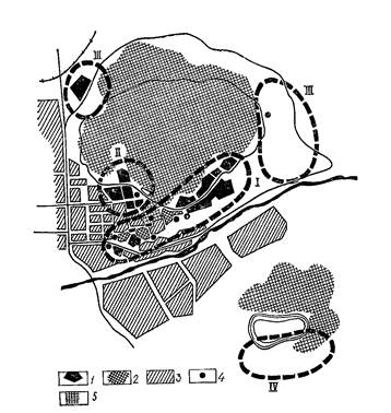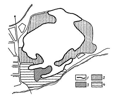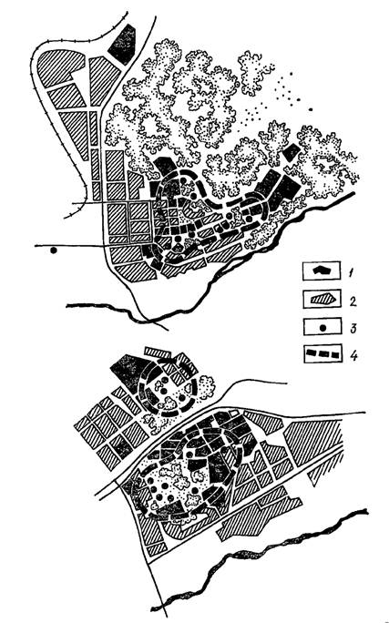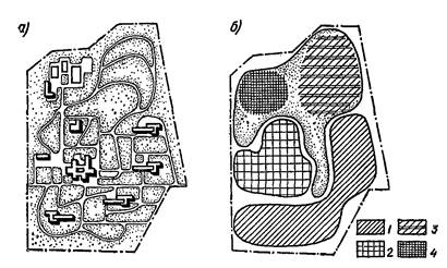 2 - зона комплексного центра; 3 - зона парка; 4 -