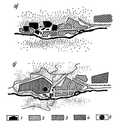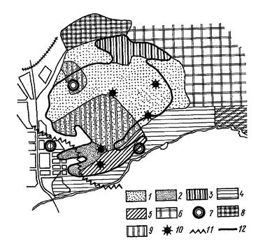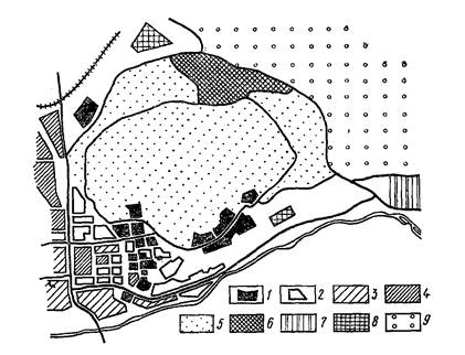 3 - территории жилой застройки; 4 - минеральные источники; 5
