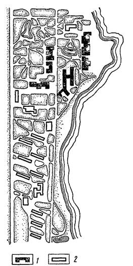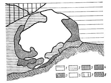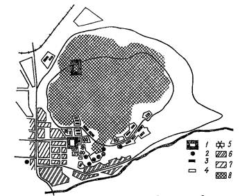 6 - коммунальная зона; 7 - зона спальных корпусов; 8 -