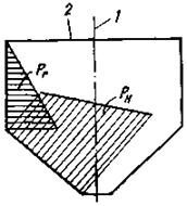φ' - угол трения сыпучего материала по материалу стенки бункера (угол внешнего трения); α - угол наклона стенки воронки к горизонту; 1 - для воронок конической формы с круглым выпускным отверстием; 2 - для воронок с прямоугольной формой отверстия при отношении длины сторон не более 1:3