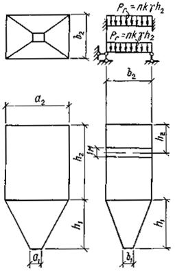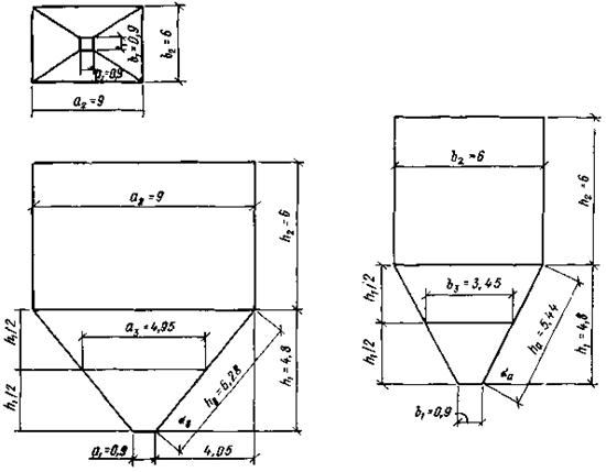 1.4. Форма бункеров зависит от назначения бункера, компоновки сооружения, требуемого запаса материала, физических свойств сыпучего материала, типа несущих конструкций и др.