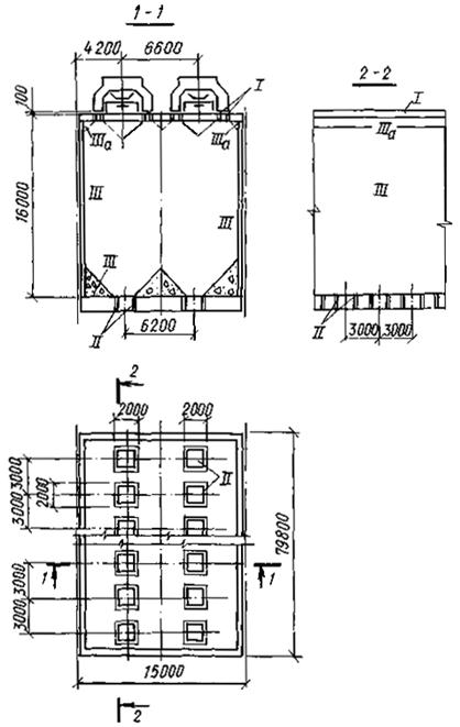 1.11. (15.7 СНиП II-91-77). Параметры бункера (форма, размеры и объем) должны устанавливаться совместно с объемно-планировочными решениями зданий и сооружений, при этом должны приниматься унифицированные сетки колонн и высоты этажей бункерного пролета.