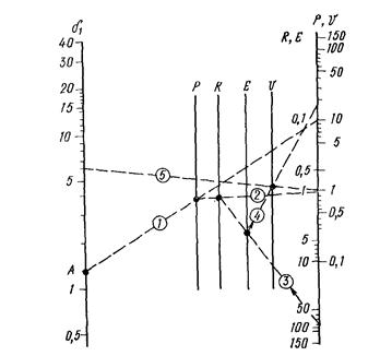 Угол наклона стенок конической воронки α, а также угол наклона ребра пирамидальной воронки αр определяются с помощью линии 1 рис. 8.