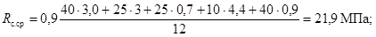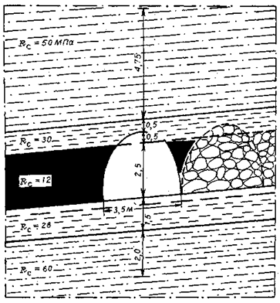 к одному участку относят все пересекаемые выработкой слои (пласты) мощностью более 0,5 м, значения Rс которых колеблются в пределах до 30 %; для этого участка Rс.ср определяют по формуле (2);