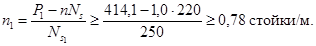 4) Плотность установки средств усиления основной крепи (металлические стойки, Ns1 = 250 кН) определяем из выражения: