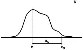 3.1.2.4 верхняя доля несоответствующих единиц продукции; рU (upper fraction nonconforming, рU): Часть распределения (3.1.2.1), которой соответствуют значения характеристики больше верхней границы поля допуска (3.2.1.3) U.