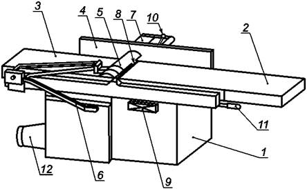 3.2.5 съемное силовое подающее устройство (demountable power feed unit): Подающий приводной механизм, предназначенный для подачи заготовки в зону обработки, установленный на станке таким образом, что его можно снять с рабочего места без применения гаечного ключа или подобного дополнительного инструмента.