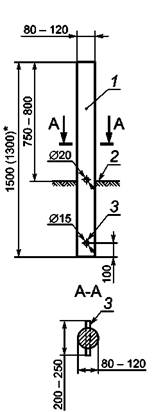 Примечание - Размеры в скобках соответствуют случаю установки столбиков с использованием удерживающих анкерных устройств. |