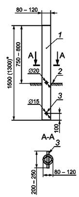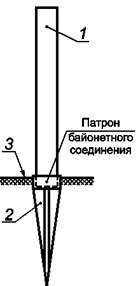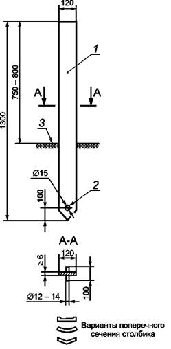 1 - корпус столбика; 2 - поверхность грунта; 3 - анкерное устройство |