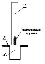 1 - корпус столбика; 2 - удерживающее устройство; 3 - поверхность грунта