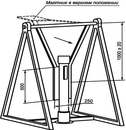 Для испытаний отбирают три образца из партии новых столбиков. Испытания проводят при помощи установки маятникового типа, схема которой приведена на рисунке 11.