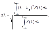 3.9 среднее квадратическое значение спектральной (-го) полосы (интервала) излучения (момент второго порядка), Dl: Момент второго порядка спектрального распределения мощности (энергии) излучения описывает выражение